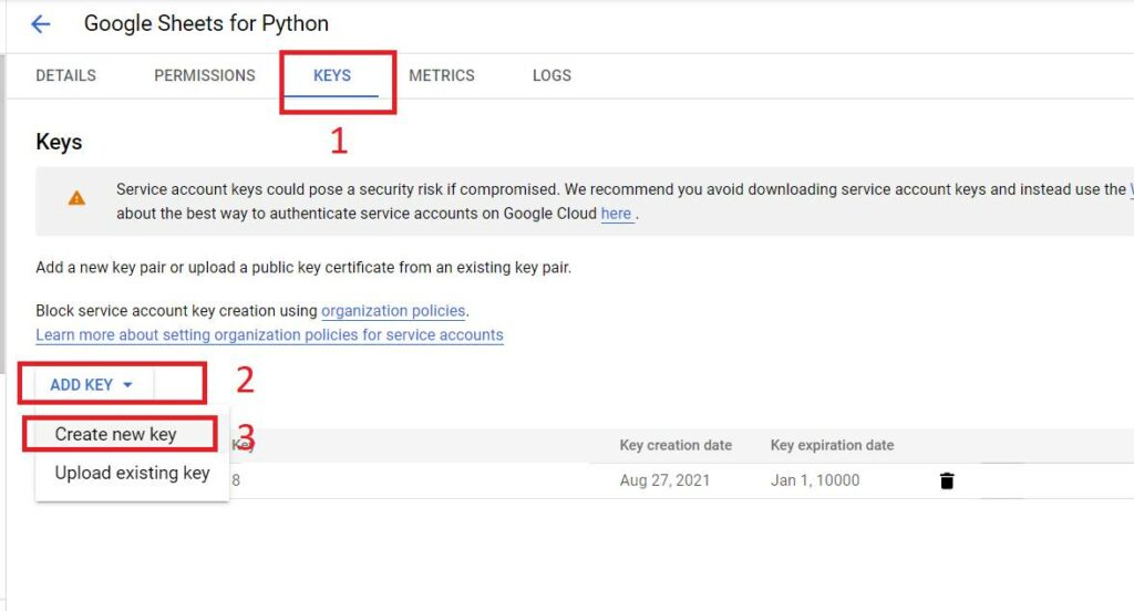 Then, a file will be downloaded to your computer. This file will be used to connect our Python script to Google Sheets.